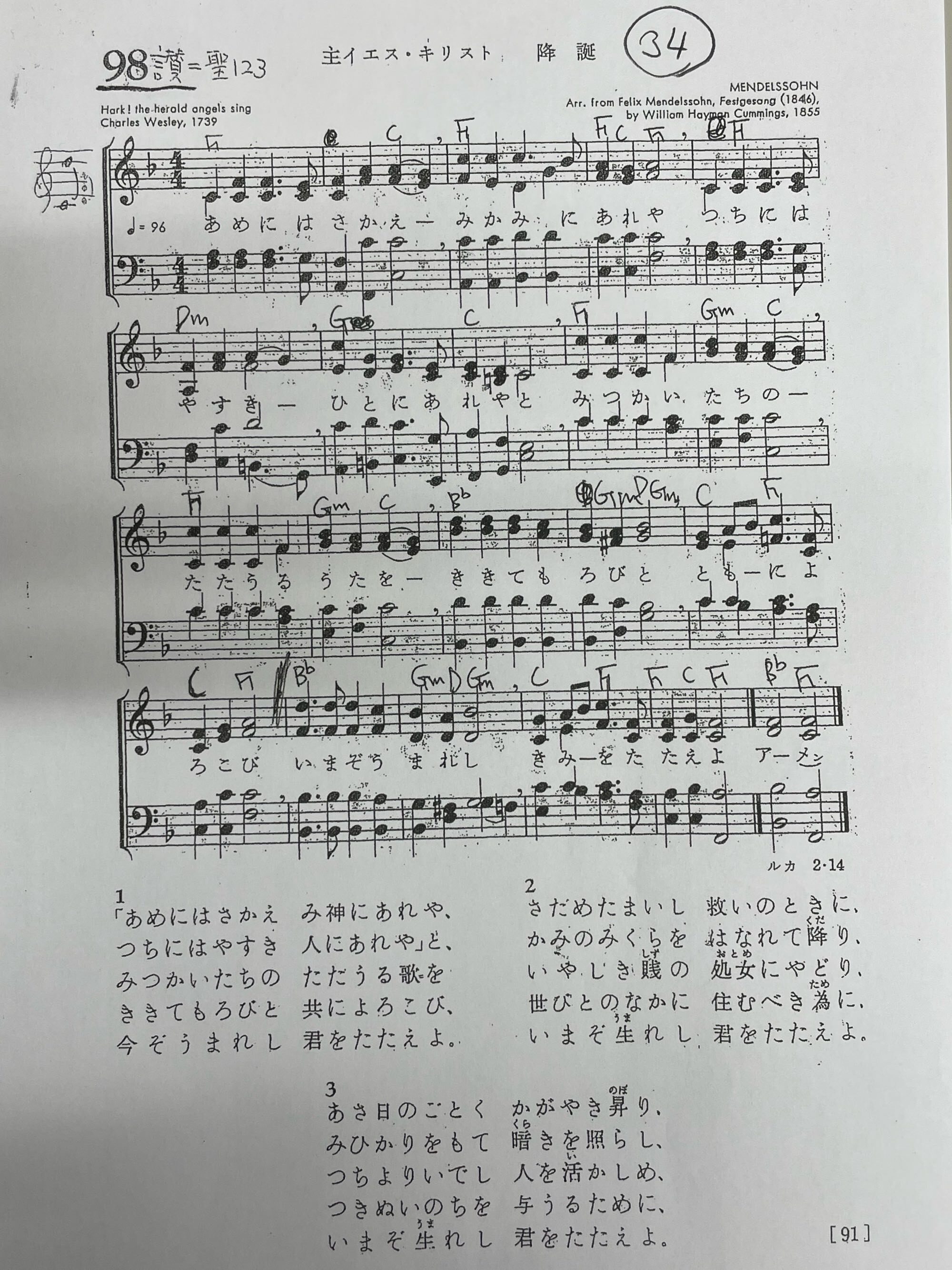 #34. 「あめにはさかえ み神にあれや」(讃美歌98番)- クリスマスシリーズ賛美